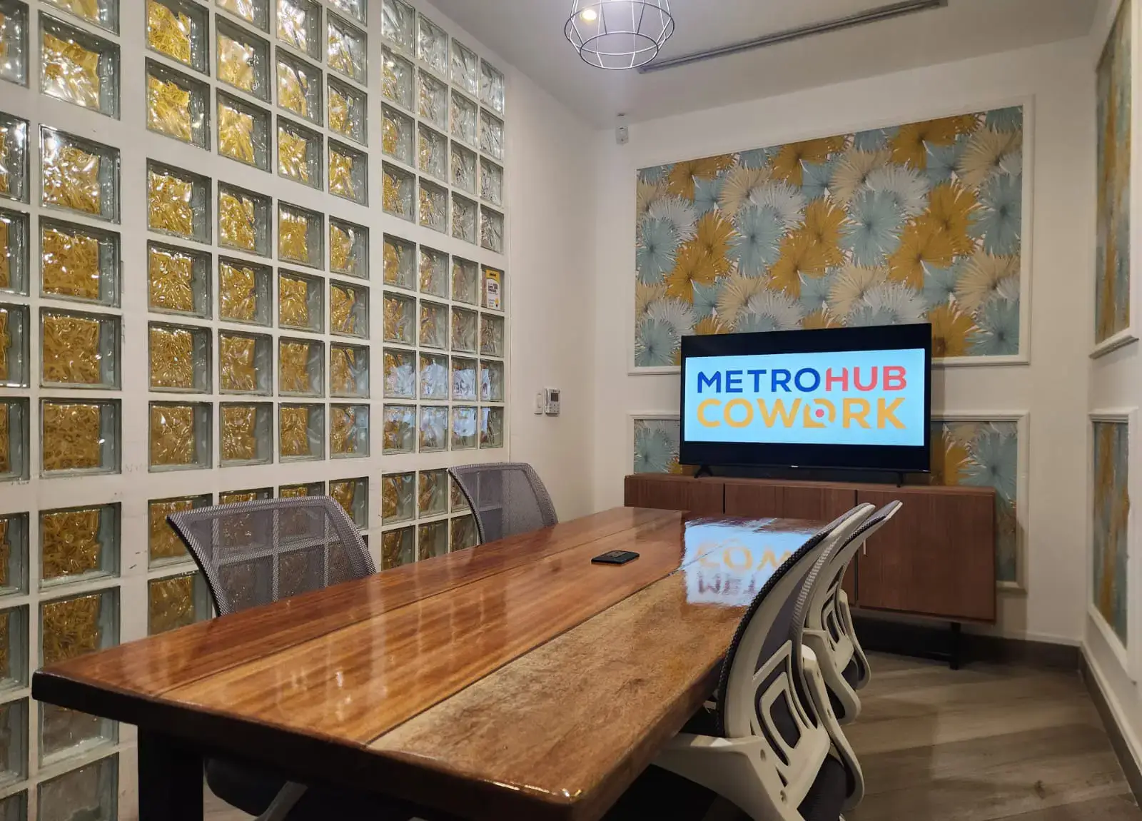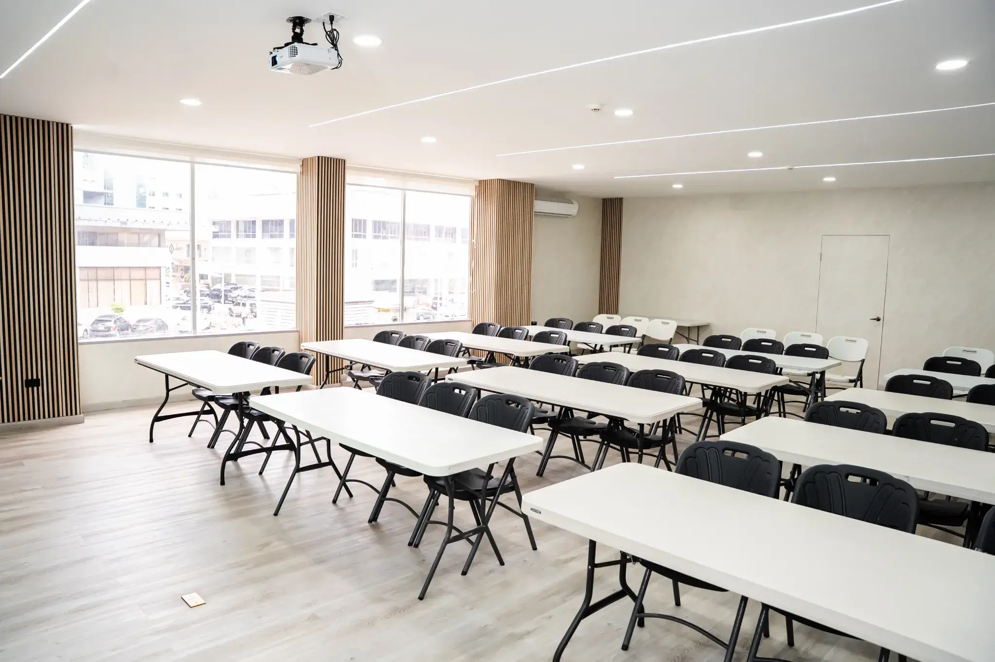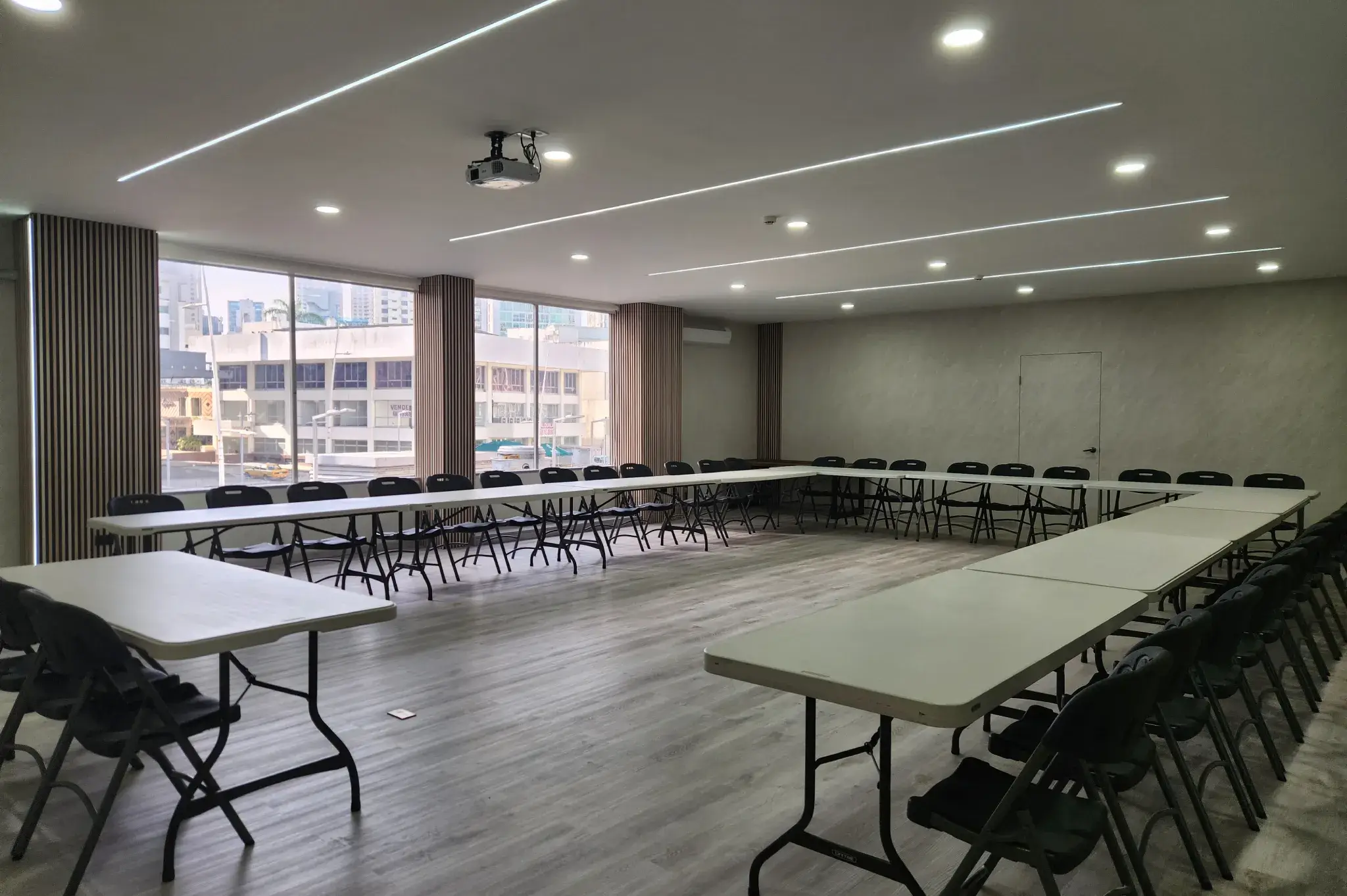 Nuestra sala de reuniones en Panamá por hora, equipada con alta tecnología para presentaciones, workshops y videollamadas.
