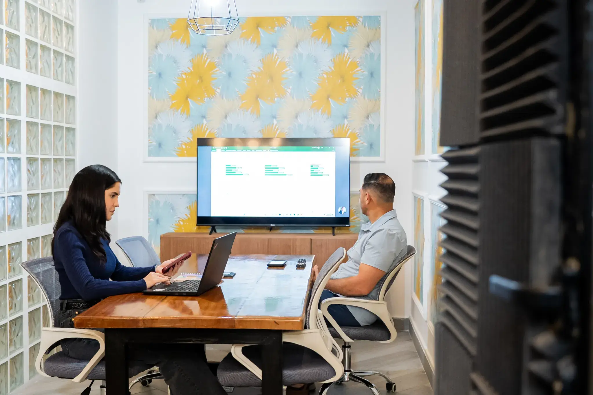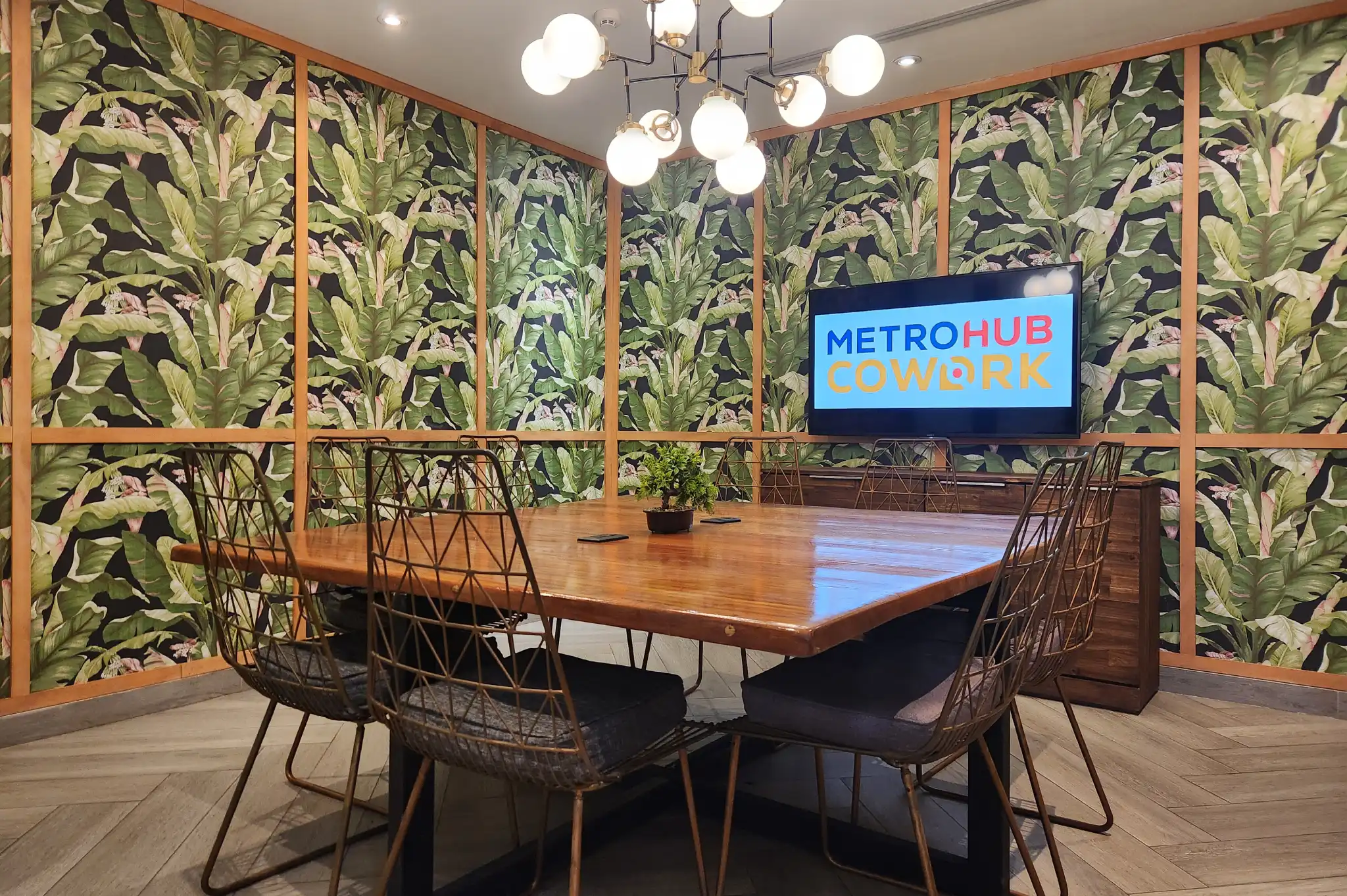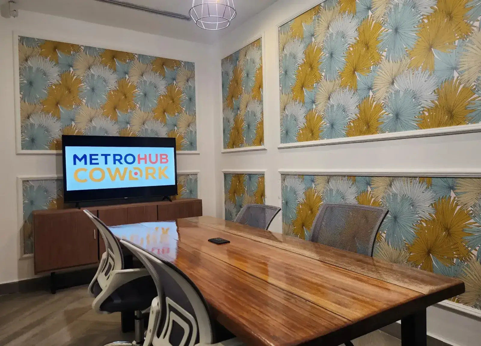 Nuestra sala de reuniones en Panamá por hora, equipada con alta tecnología para presentaciones, workshops y videollamadas.